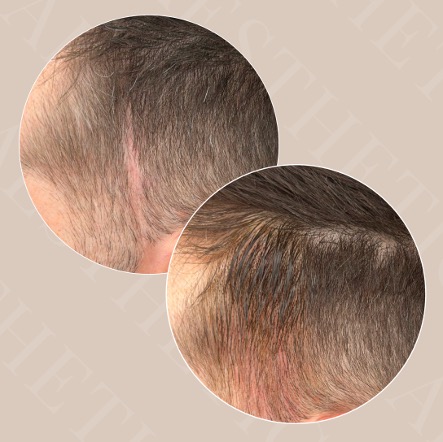 V takýchto prípadoch funguje trichopigmentácia ako jemný detail. Pomocou takzvanej techniky hustoty sa medzi vlasmi vytvorí prirodzený tieň, vďaka čomu sa oblasť javí kompaktnejšia a hustejšia bez potreby ďalšieho chirurgického zákroku.